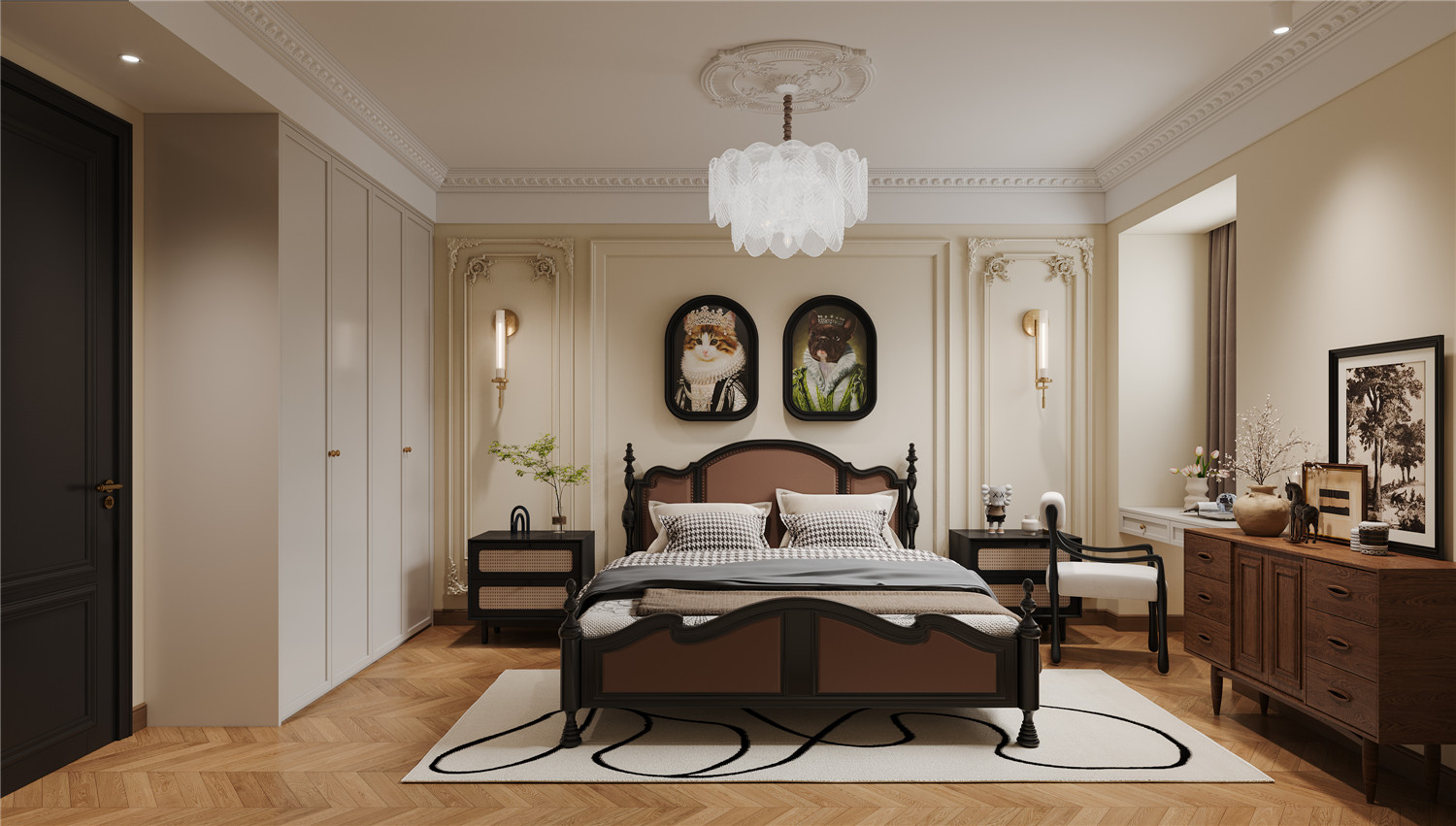 4 一間面積較小的次臥作為衣帽間納入主臥,形成一個套間,收納更全面。