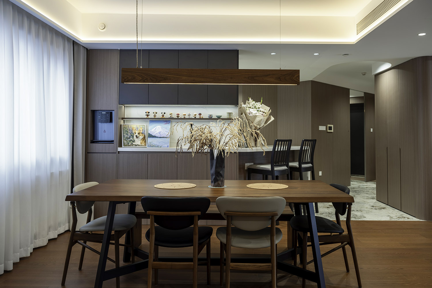 2 從玄關餐廳整墻一體柜,視覺感延伸強;鞋柜餐邊柜加展示區(qū)加儲物柜的功能,擁有超強收納。
