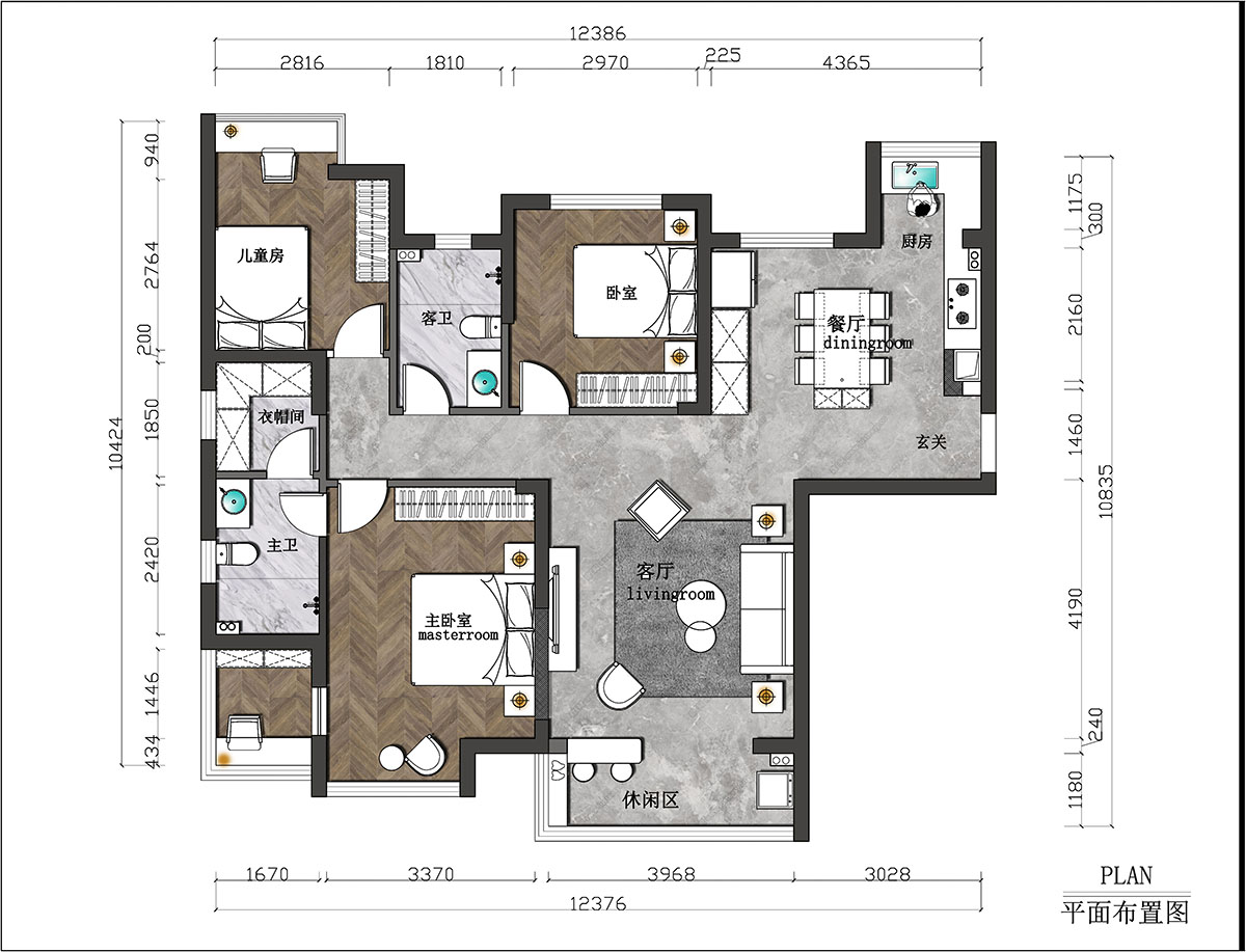 原戶型餐廚空間較小,廚房旁小陽臺利用率不高。業主希望通過戶型改造,增大餐廚空間,且有做西餐的位置。業主家一兒一女,希望在保持三臥室結構不變的情況下,增加一間書房。