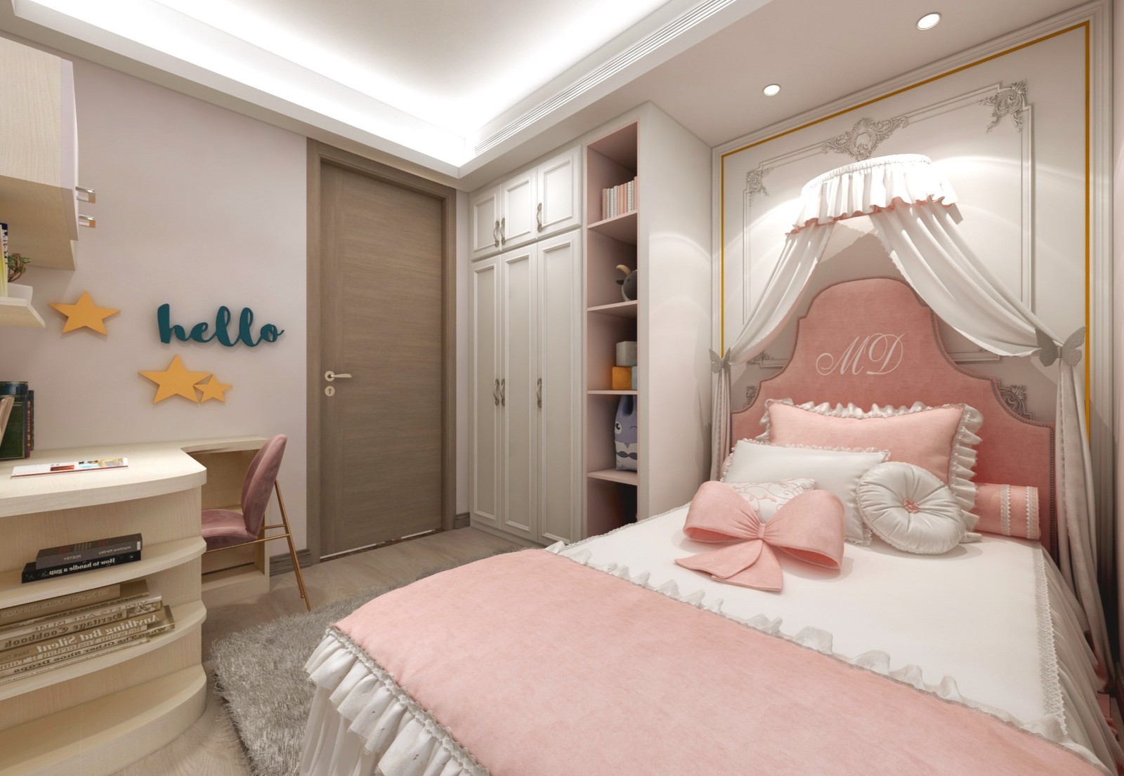 充滿童真韻味的床頭墻設計搭配上粉嫩的床體設計,勾勒出甜美優(yōu)雅的少女氛圍。