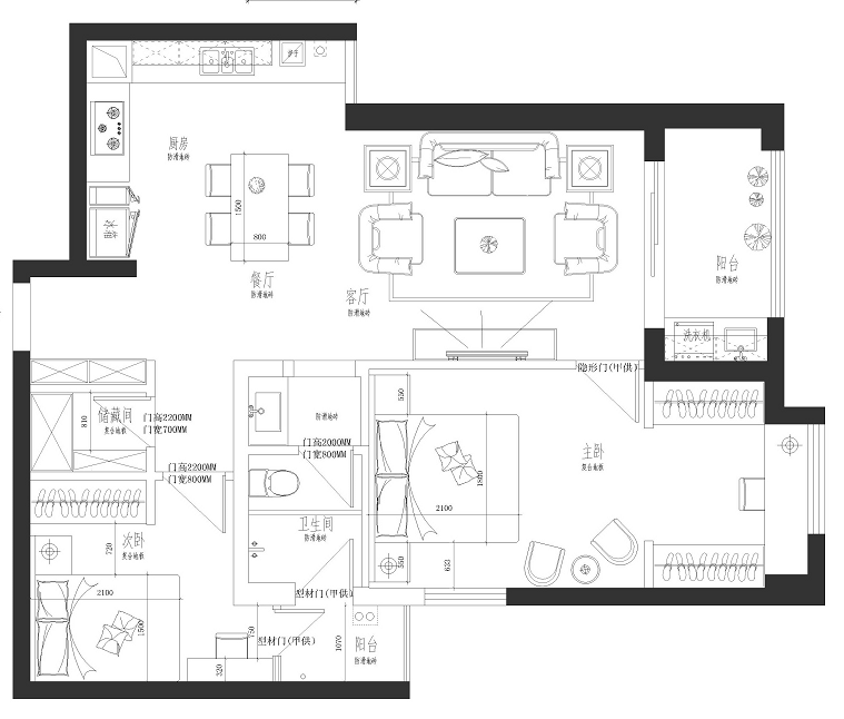 廣電蘭亭榮薈的這套二居室住宅面積在90㎡左右,原有的戶型結構細小角落較多,加上原本房屋面積不大,因此需要對整體空間進行更加合理高效的利用。設計師在充分考慮業主使用需求的前提下,將次臥旁邊的瑣碎成一個迷你儲物間,有效避免了空間的浪費。而開放式廚房的設計,則有效節省了室內空間的占用。