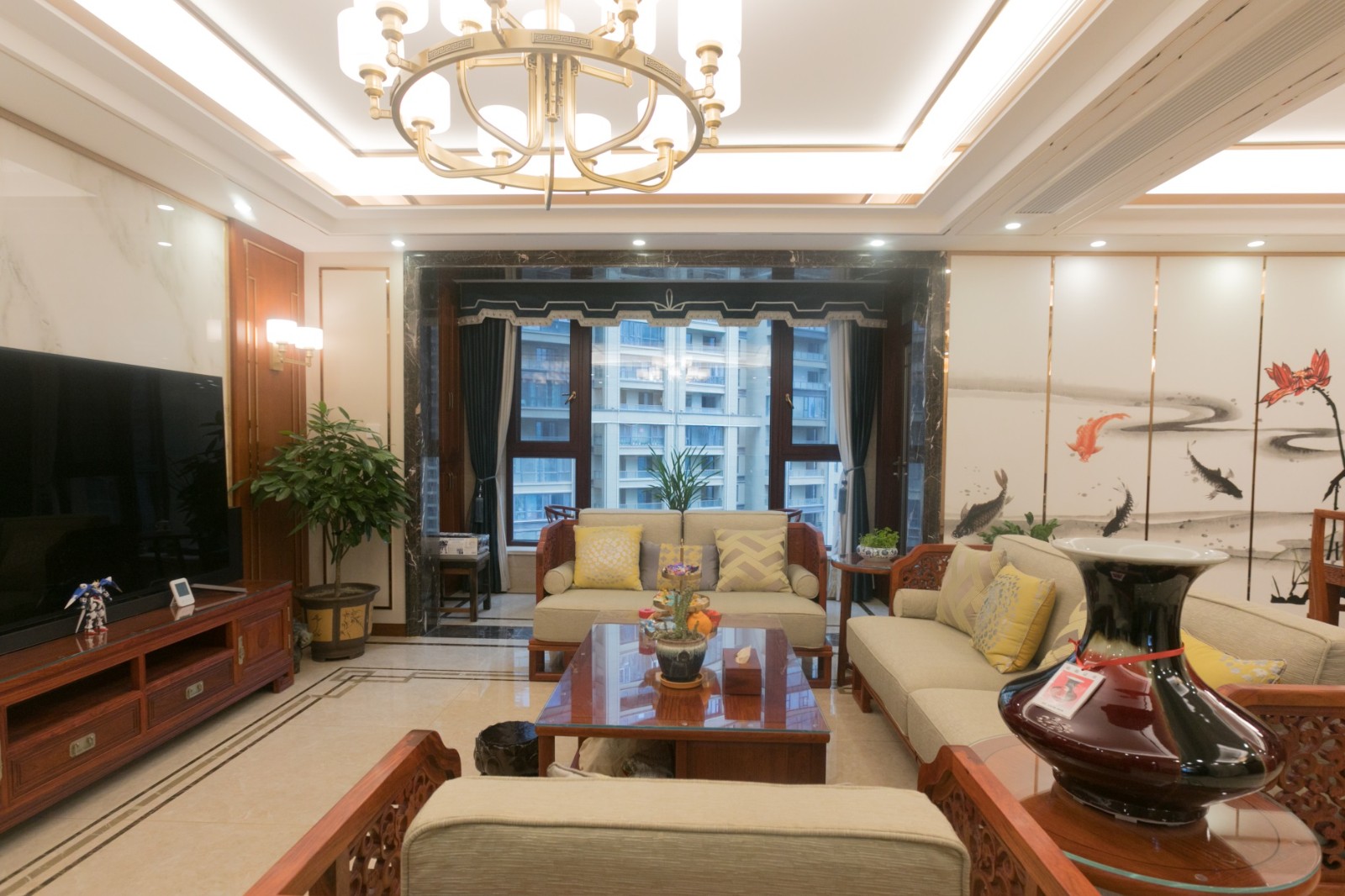 案例簡(jiǎn)介:基于本案例業(yè)主的背景、喜好還有個(gè)人追求,設(shè)計(jì)師選用了中式風(fēng)格打造空間,從典雅的山水畫意境入手,搭配以傳統(tǒng)中式住宅設(shè)計(jì)手法,雜糅現(xiàn)代時(shí)尚元素,將傳統(tǒng)古風(fēng)韻味與現(xiàn)代都市生活相融合,呈現(xiàn)出帶有現(xiàn)代時(shí)尚氣息的特色復(fù)古住宅,讓業(yè)主能夠在喧囂的城市中,獲得一個(gè)心靈棲息之所。