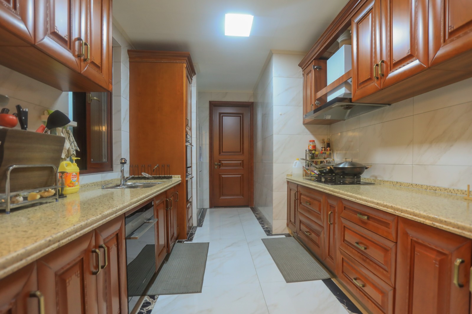 長(zhǎng)條形的廚房空間面積相對(duì)比較狹小,因此設(shè)計(jì)上使用了大量的收納元素,減少各類瑣碎物件出現(xiàn)在明面上的概率。