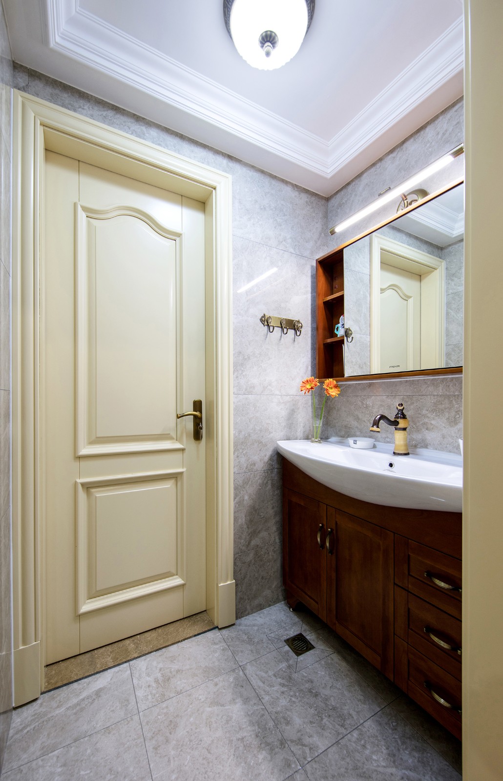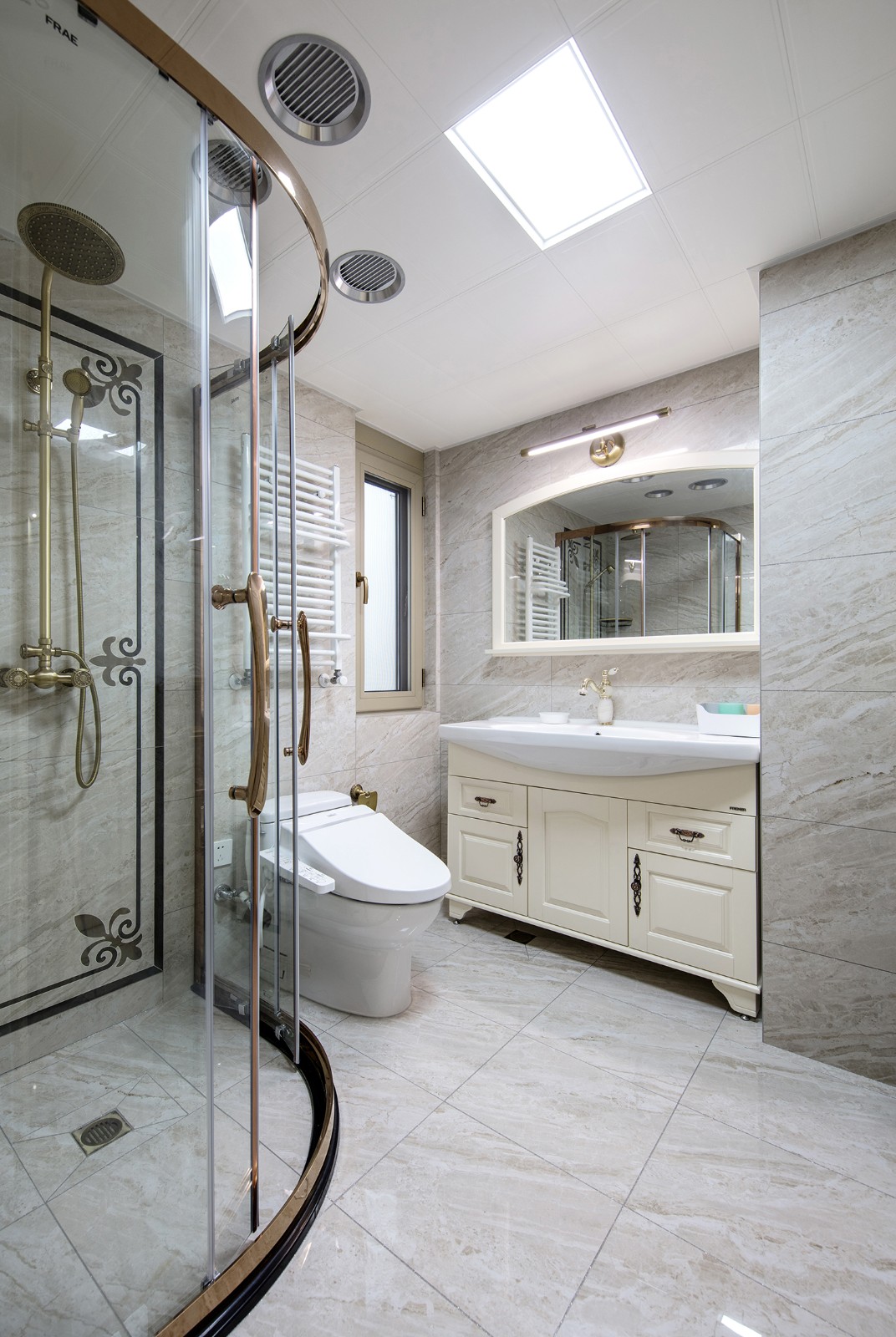 半圓弧的玻璃滑門既可以起到干濕分離的作用,又為衛生間增添了一抹藝術氛圍。