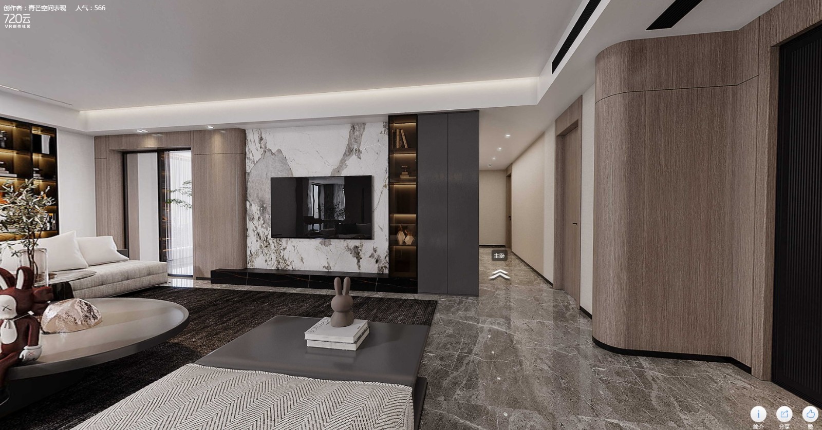 木質軟隔斷清新又溫暖,搭配上大理石背景墻,強調空間質感。