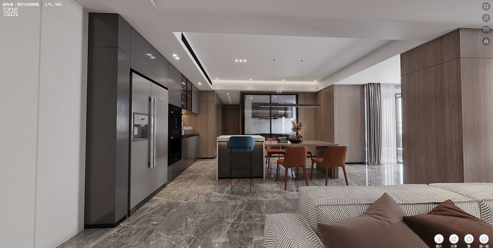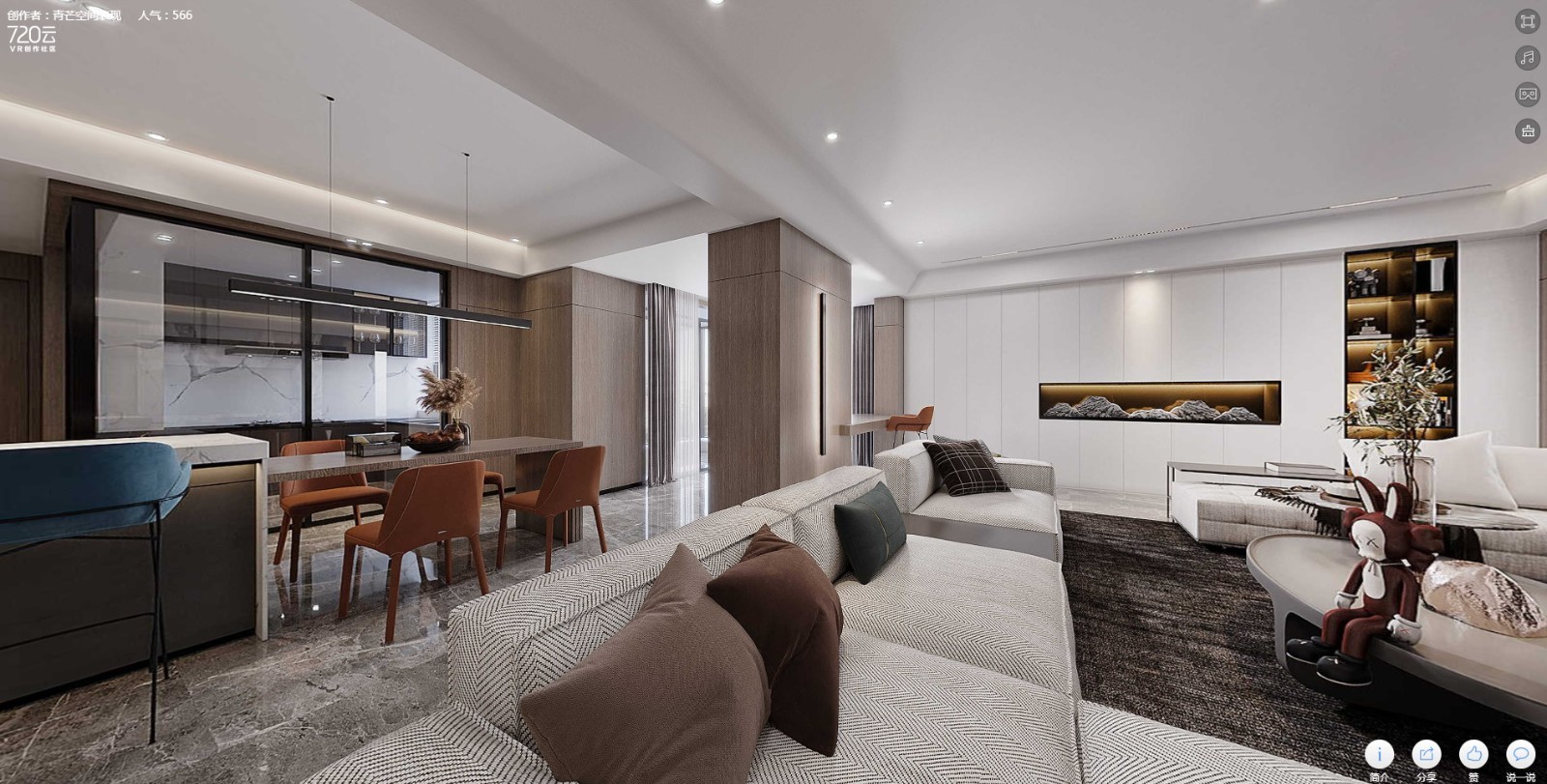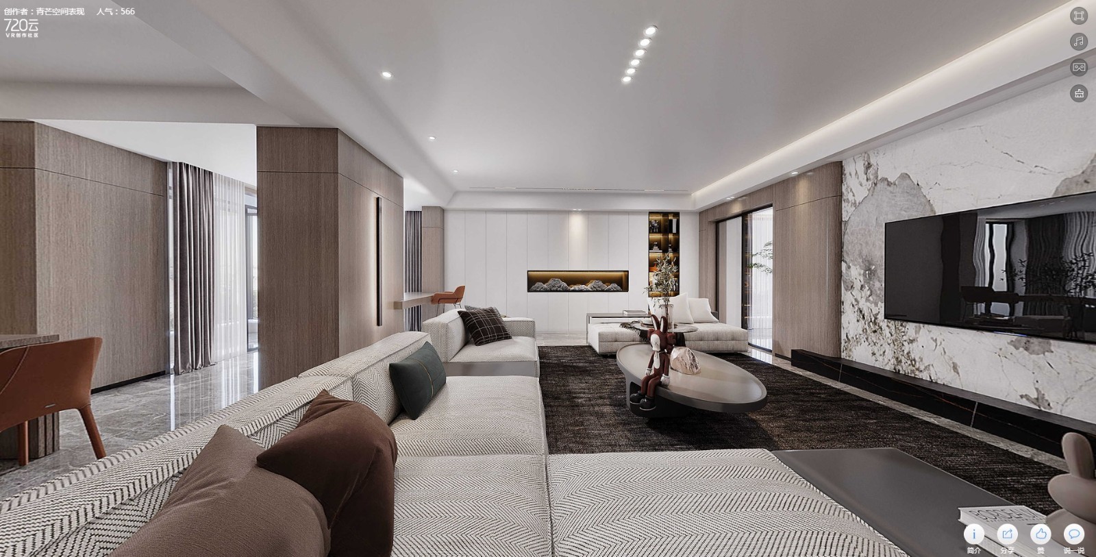 案例簡介:一個好的家裝設計能夠讓人徹底放松身心,更好享受閑暇時光的美好。而本案例的業(yè)主喜歡簡單的元素,不喜歡各種花里胡哨的造型設計,因此希望設計師能夠根據自己的審美打造出一個簡約而又不簡單的品質住宅。根據業(yè)主的需求,設計師選擇了簡約風進行室內裝飾,同時利用高檔材料本身的質感來提升室內環(huán)境的品質。
