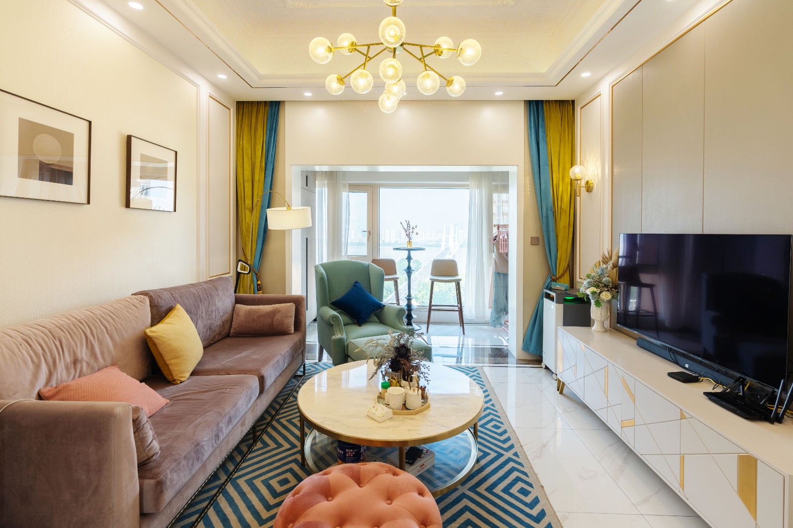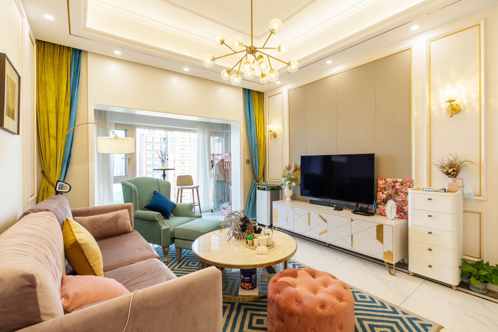案例簡介:業主是一對新婚夫妻,偏愛歐洲文化,但是又不喜歡過于繁瑣的設計,希望能夠加入一些現代簡約元素。同時,為了節約裝修成本,業主提出盡量不要破壞原有的功能結構。為了滿足業主的使用需求,設計師借用色彩來營造歐式風情,同時點綴以現代化元素,強調空間的時尚氛圍感。