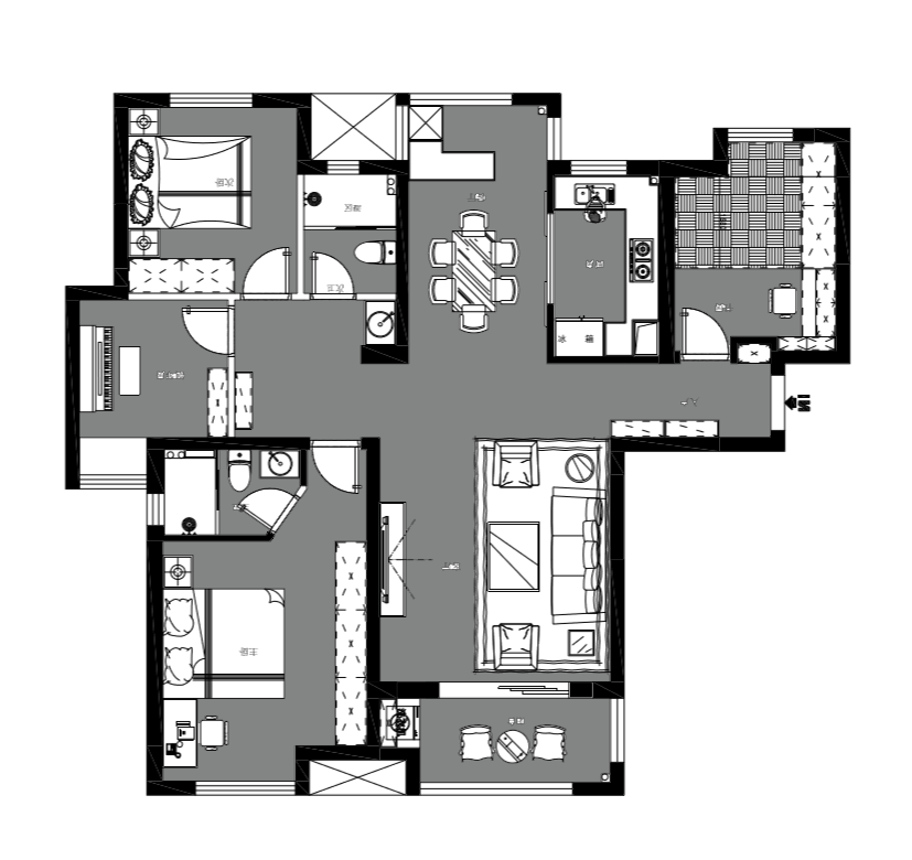 金地自在城這套136㎡的四居室住宅雖然建筑面積不小,但是由于空間中獨(dú)立的空間比較多,因此各個(gè)功能區(qū)域的占地面積其實(shí)并不大,因此設(shè)計(jì)師在對(duì)空間進(jìn)行規(guī)劃設(shè)計(jì)的時(shí)候就需要優(yōu)先考慮從視覺(jué)上起到擴(kuò)大空間的作用,避免造成視覺(jué)壓迫感,進(jìn)而影響起居質(zhì)量。而雙陽(yáng)臺(tái)設(shè)計(jì),則在保障南北通透的情況下有效提升了室內(nèi)的視覺(jué)寬敞度。