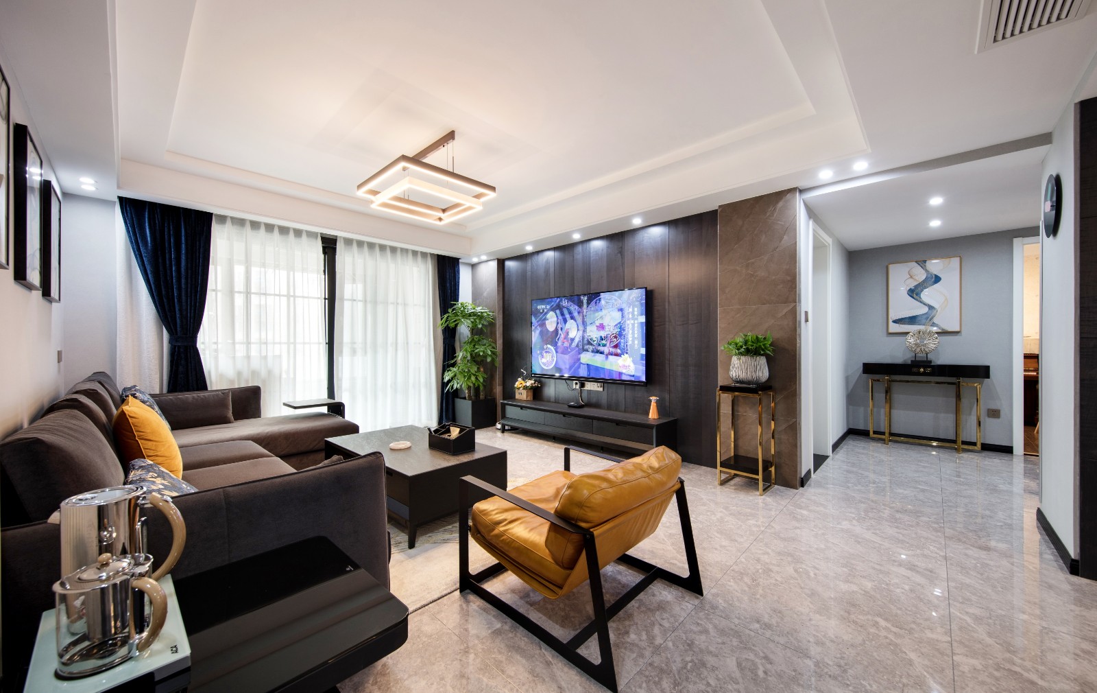 案例簡(jiǎn)介:本案例的業(yè)主作為一個(gè)年輕的創(chuàng)業(yè)者,平常工作帶給他太多壓力,因此他希望能夠擁有一個(gè)舒適的休憩空間,讓自己能夠得到真真正正的放松。因此設(shè)計(jì)師在進(jìn)行空間設(shè)計(jì)時(shí),選用了一些相對(duì)比較簡(jiǎn)約而又不易過(guò)時(shí)的元素,同時(shí)借用色彩的搭配來(lái)強(qiáng)調(diào)整個(gè)家居空間的溫馨感。為了能夠讓居住者能夠更好的得到心靈休憩,設(shè)計(jì)師將空間中的陽(yáng)臺(tái)區(qū)域放大打造成一個(gè)休閑區(qū),可供居住者觀賞室外美景、放松身心。