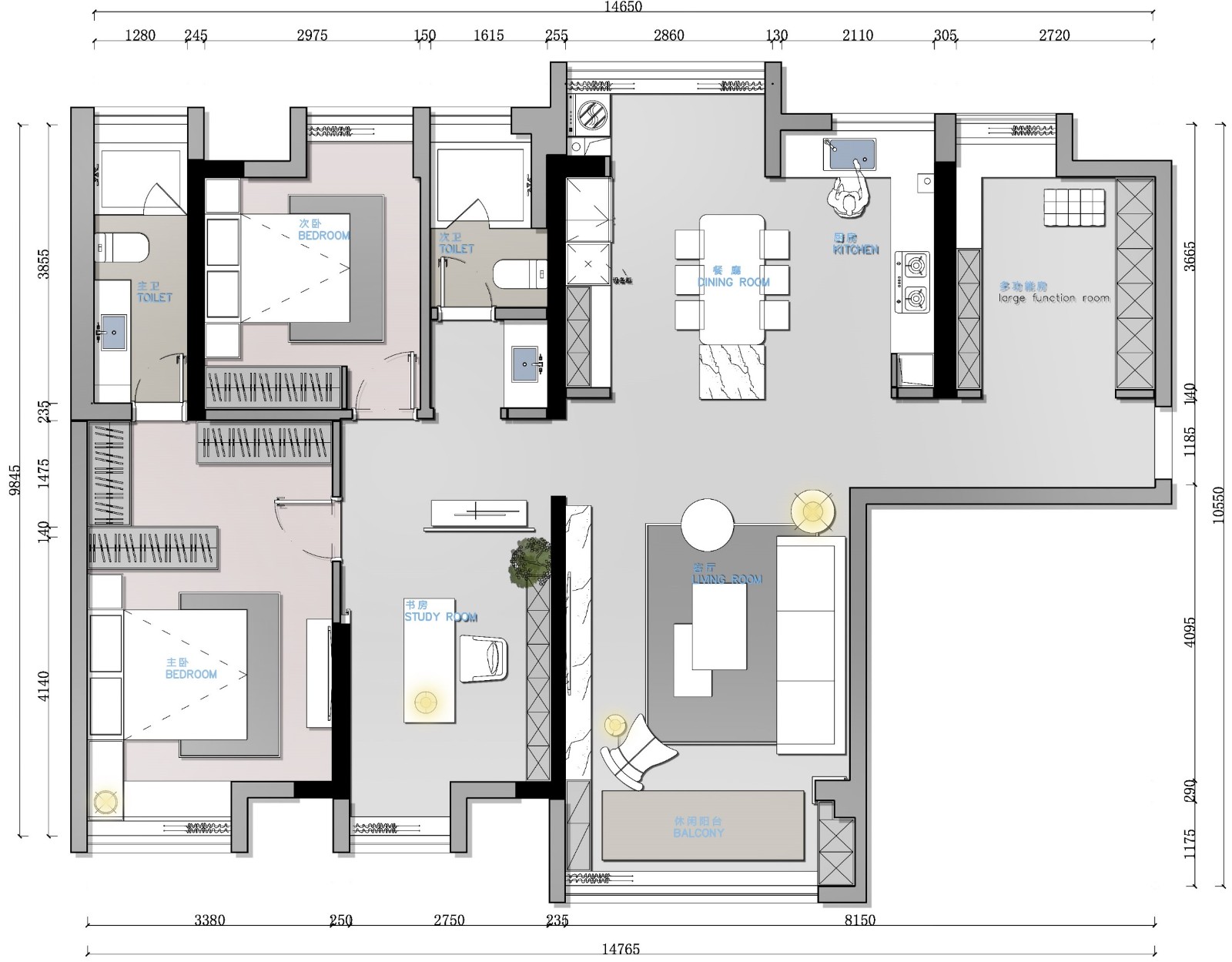 案例簡介:現(xiàn)代低調(diào)奢華風(fēng)格這種氣質(zhì)多數(shù)通過一些精致軟裝和材質(zhì)的質(zhì)感來體現(xiàn)。營造出舒適、通透、合理的使用空間,讓整個(gè)空間透著一種清澈、靜怡、寧和、雅致之美。現(xiàn)代輕奢風(fēng)格強(qiáng)調(diào)簡單中有奢華感受,看似簡潔素凈的外表之下融入時(shí)尚輕奢的特質(zhì),展示著精致優(yōu)雅的生活態(tài)度,不需要走在前端,更不需要炫耀夸贊,低調(diào),舒適,卻無損高貴與雅致,盡情享受生活的美好。