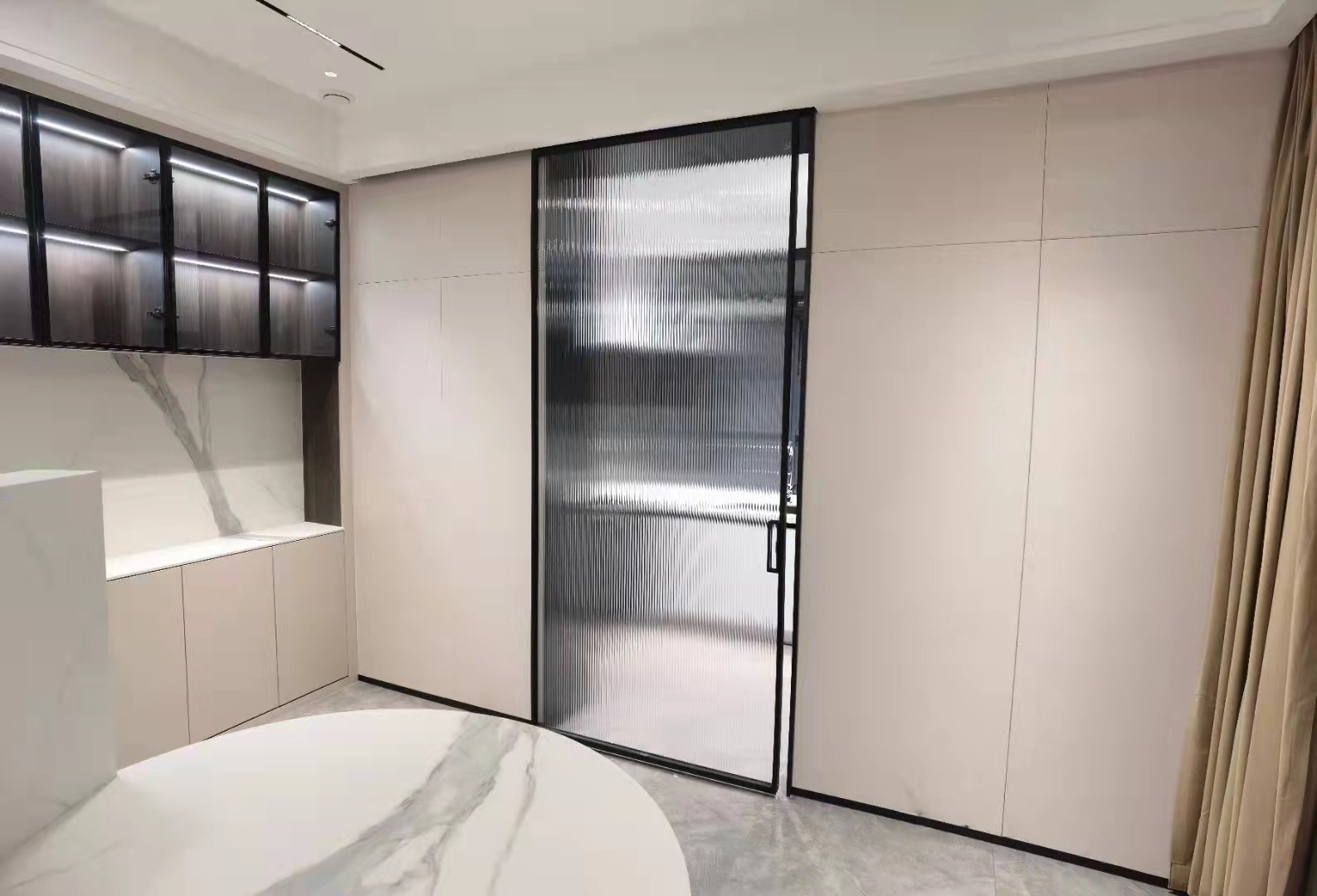 張家灣小區(qū)這套住宅的面積只有90㎡,原有的功能結(jié)構(gòu)設(shè)計(jì)中只要兩個(gè)臥室,并不足以滿足業(yè)主的使用需求,因此設(shè)計(jì)師根據(jù)業(yè)主的需求與想法將陽(yáng)臺(tái)盡頭區(qū)域的小空間改造成迷你保姆房,以提升空間利用率。就餐區(qū)域則設(shè)計(jì)在客廳區(qū)域的同一空間中,以減少空間浪費(fèi)。半開放式的廚房設(shè)計(jì)現(xiàn)代感十足,且有利用提升家居空間的視覺通透感。