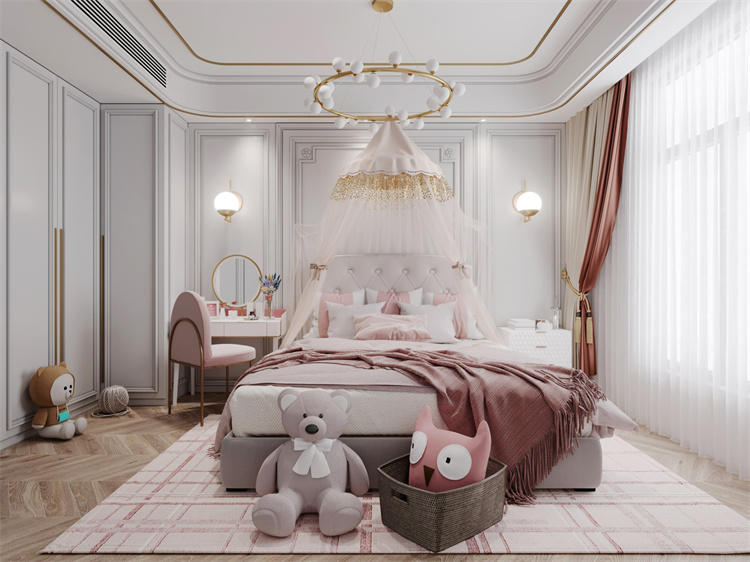 嵌入式櫥柜隱形感強而又不失實用性,橢圓形燈飾清新而又不失輕奢時尚感。