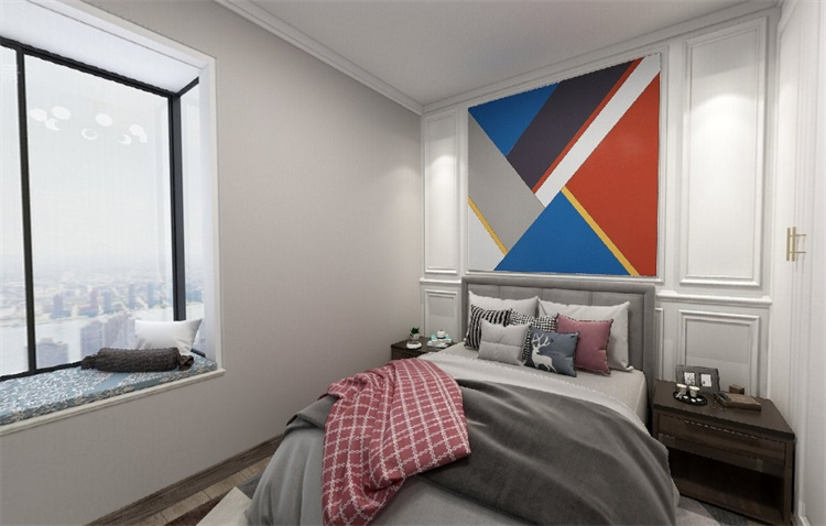 菱形色彩構(gòu)成的墻面簡約而又不失濃烈的個(gè)人色彩,有效提升了空間的品味感與藝術(shù)氛圍。