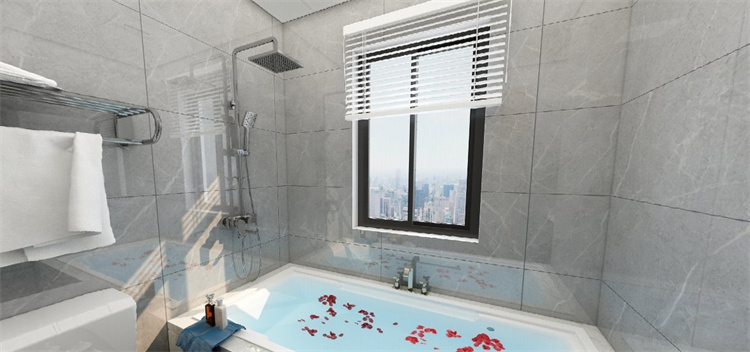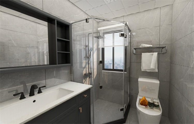 衛(wèi)生間借助大面積白色進(jìn)行裝飾,搭配上灰色儲物柜,簡約而又不失潔凈清新感。