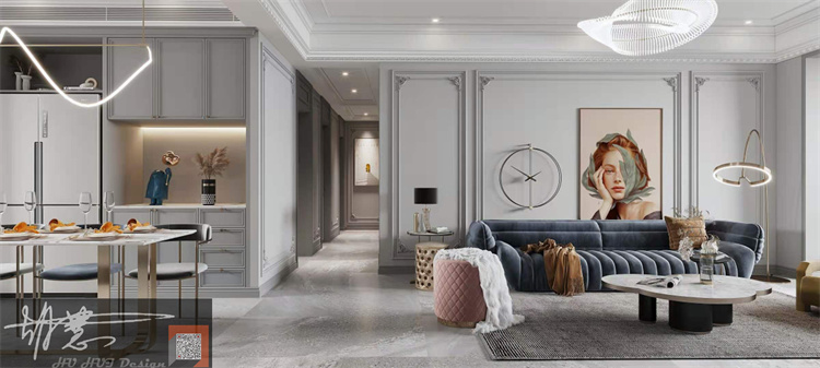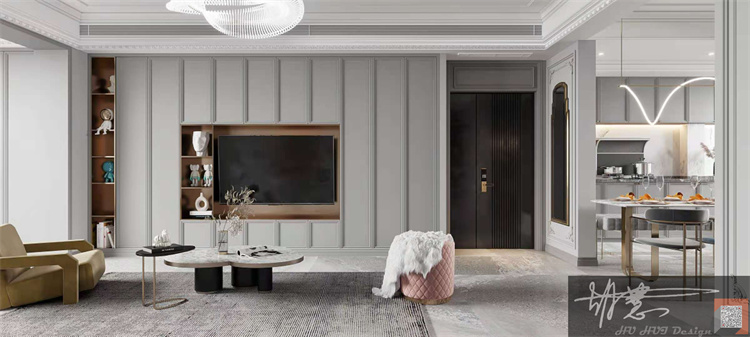 案例簡(jiǎn)介:本案的業(yè)主是一對(duì)即將結(jié)婚的年輕夫妻,同為白領(lǐng)的他們不喜歡過(guò)度裝飾,希望設(shè)計(jì)師能夠使用一些盡可能簡(jiǎn)約的元素裝飾空間,以保障耐看且易于打理。設(shè)計(jì)師按照業(yè)主的喜好與想法,選擇了簡(jiǎn)約而又不失品質(zhì)感的現(xiàn)代輕奢風(fēng)進(jìn)行裝飾設(shè)計(jì),利用簡(jiǎn)潔的元素與色彩強(qiáng)調(diào)空間的沉穩(wěn)優(yōu)雅氣息,而細(xì)節(jié)處的設(shè)計(jì)則提升空間的高級(jí)品質(zhì)感。