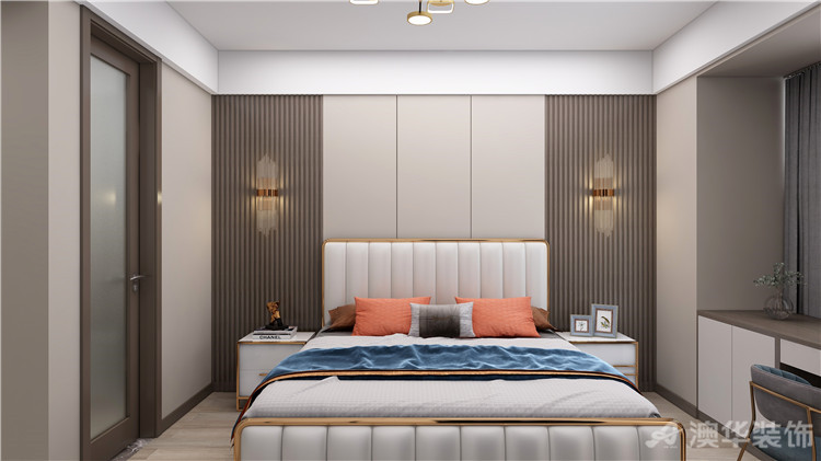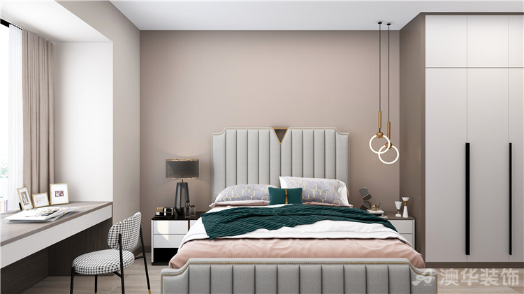 臥室和書寫功能融合為一體,休息之后可以完成自己的工作,床鋪背景墻符合酒店風格,每一天都能夠感受居住酒店的快樂。