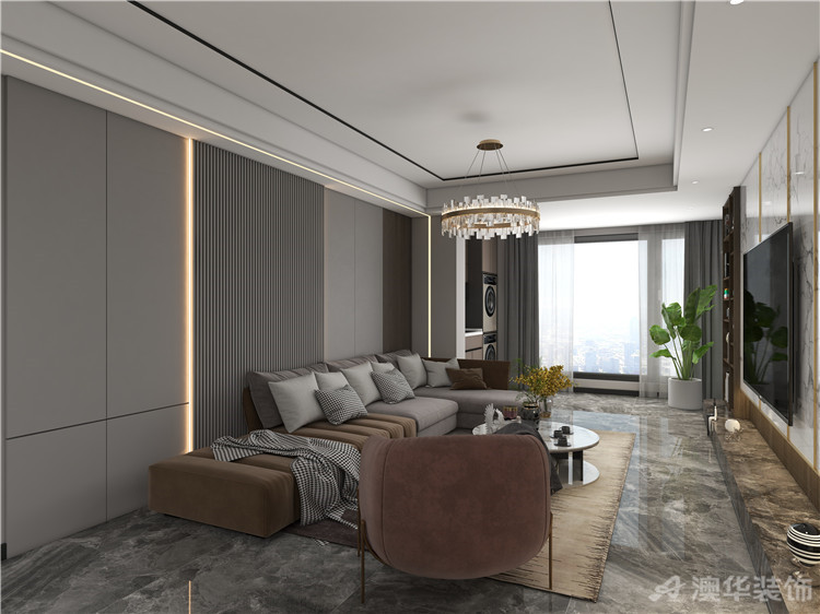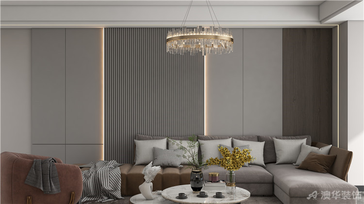案例簡(jiǎn)介:本案設(shè)計(jì)以線色調(diào)為主,線性燈點(diǎn)綴面,胡桃木的穩(wěn)重色調(diào)進(jìn)行搭配。沙發(fā)、燈具及軟裝的陳設(shè),充分展現(xiàn)通透空間的所派感。以縱向穿插呈現(xiàn)空間的力度之美,展示美學(xué)點(diǎn)、線、面的特點(diǎn)之美,模糊空間界線、材質(zhì)界線,造就層次流轉(zhuǎn)的界面語(yǔ)匯,盡顯空間魅力。作為新人的婚房而言,完全符合了現(xiàn)代人的審美需要。