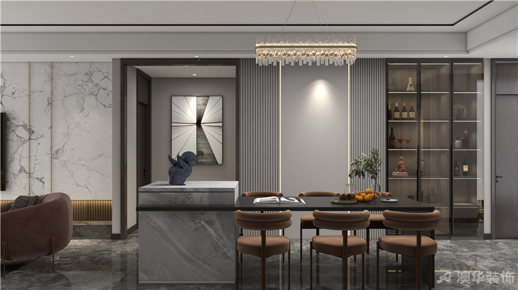 獨(dú)特的餐桌模式充滿了現(xiàn)代感,墻上的掛飾簡(jiǎn)單卻帶來(lái)不同的韻味。