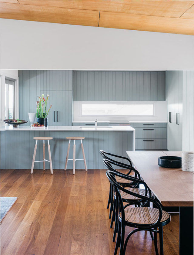 同時可以把中島與餐桌合二為一,沿著中島臺面延伸出一部分臺面作為用餐區,或者直接把中島當成臨時餐臺。