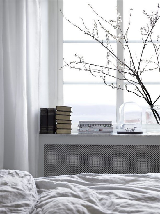 ▲把所有物品放置在平臺上一字排開是最簡單、有效、不易出錯的方法,不同物品交錯搭配會顯得更加別致。好看的書脊盡管讓它撐顏值,比如厚時尚雜志、設計年鑒、人物傳記等等,而那些過期雜志可以收起來了,要么就把它們反過來放,露出一排白白的側頁做點綴也行。