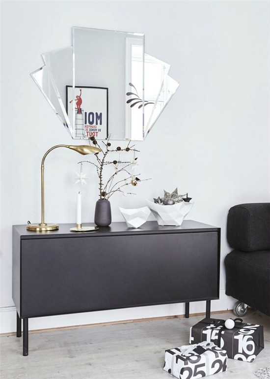 ▲除了常見的框畫,墻上還可以掛上形態各異的鏡子,尤其是圓鏡和方柜之間能碰撞出強烈的幾何美感。