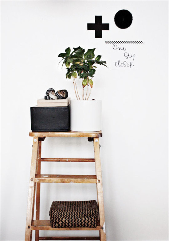 ▲要貼紙,買一捆黑膠布就夠了。簡約大方的圖形,和任何靜物組合都很搭。