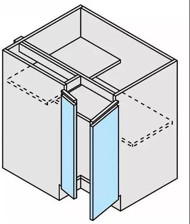 增加櫥柜長度的同時,「U」型櫥柜也為我們增加了兩個轉(zhuǎn)角。這兩個轉(zhuǎn)角所形成的盲柜,由于進深空間很大,拿取物品并不是很方便。