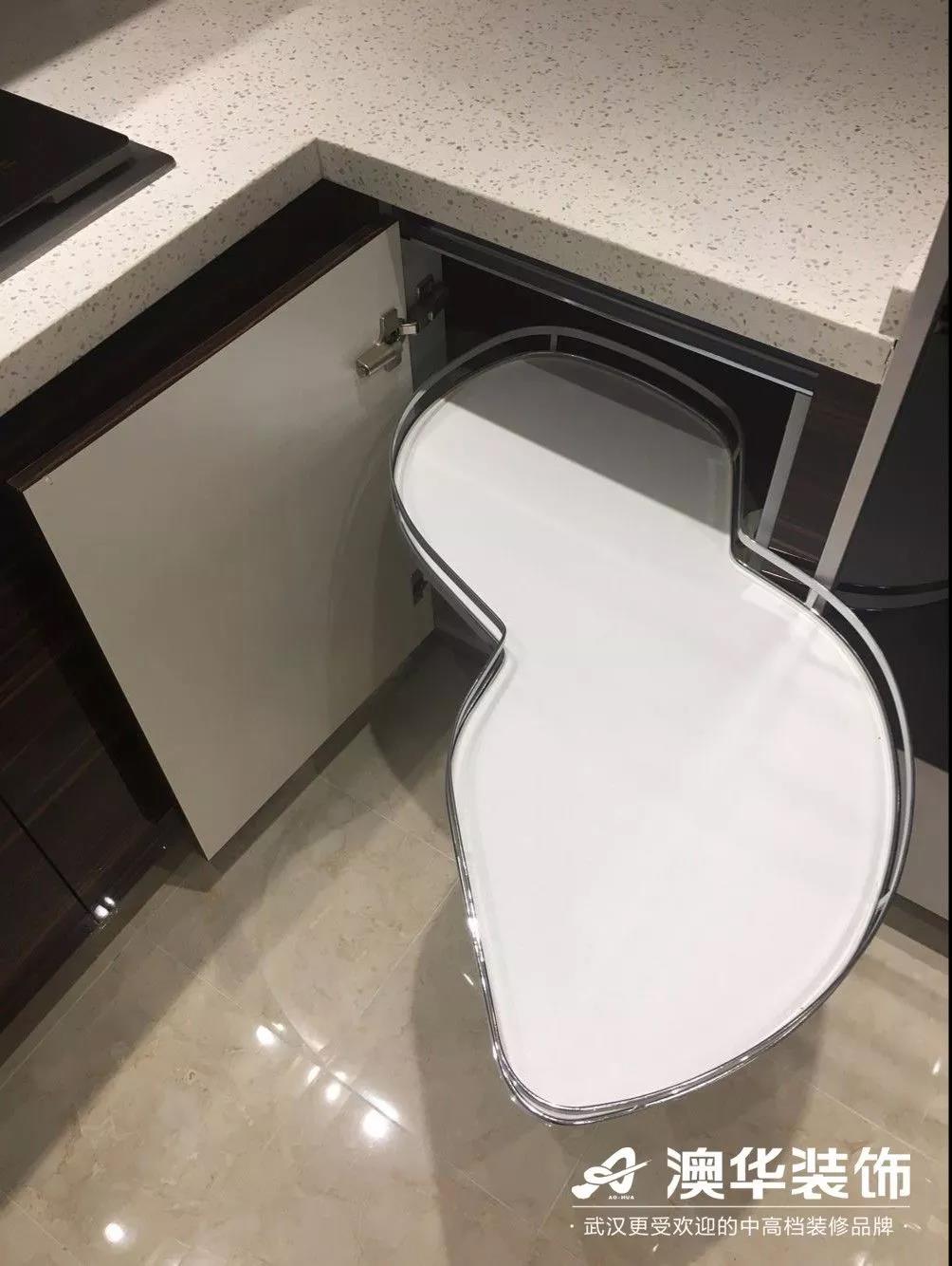 針對這個問題,櫥柜商研發(fā)了螺旋轉(zhuǎn)盤、折疊拉籃等五金構(gòu)件↓↓↓