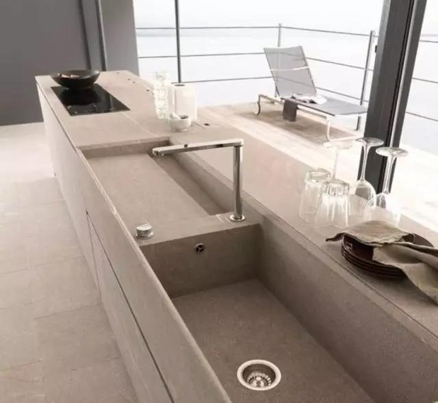 而且不銹鋼本身自帶高端一體人造石一樣,都可以做成無縫一體設(shè)計,還能和水槽連在一起,造價相對合理。