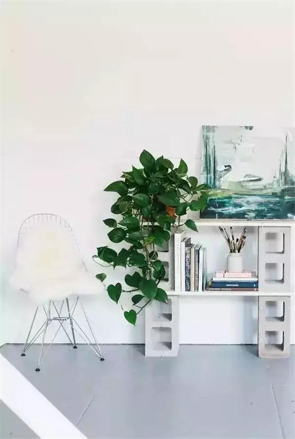 水泥磚是很便宜的建筑材料,隨意搭幾塊,加上小木板,一個簡易立柜就出來了。中性灰與磨砂質感使它能完美適用于任何場所。當然,還可以涂飾不同顏色來讓它更豐富多彩。