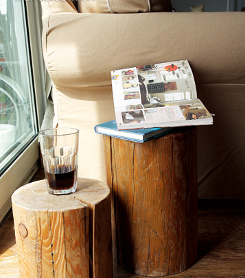 無意撿回來的樹墩,用砂紙打磨一下粗糙的皮膚,刷上防蟲劑和清漆,就變成家中可愛的小坐凳。自然氣息十足,為生活增添一絲野趣。