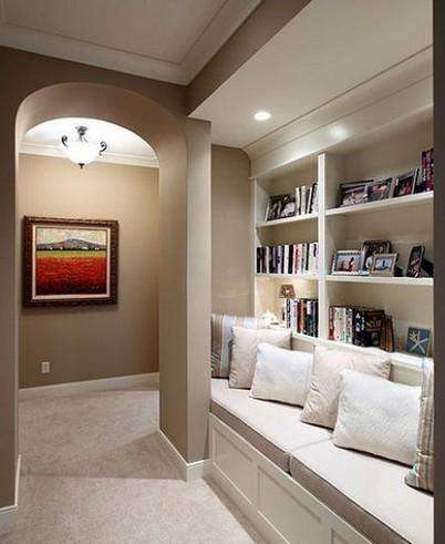如果走廊處在窗戶側(cè),不妨將走廊打造成為休息區(qū),依窗設(shè)置軟榻,放置一些抱枕或者裝飾,既不會占據(jù)居室太多空間,又能讓家人不出門也能享受明媚的陽光。