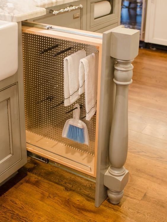 ▲把廚房清潔毛巾和清潔工具藏在縫隙里。
