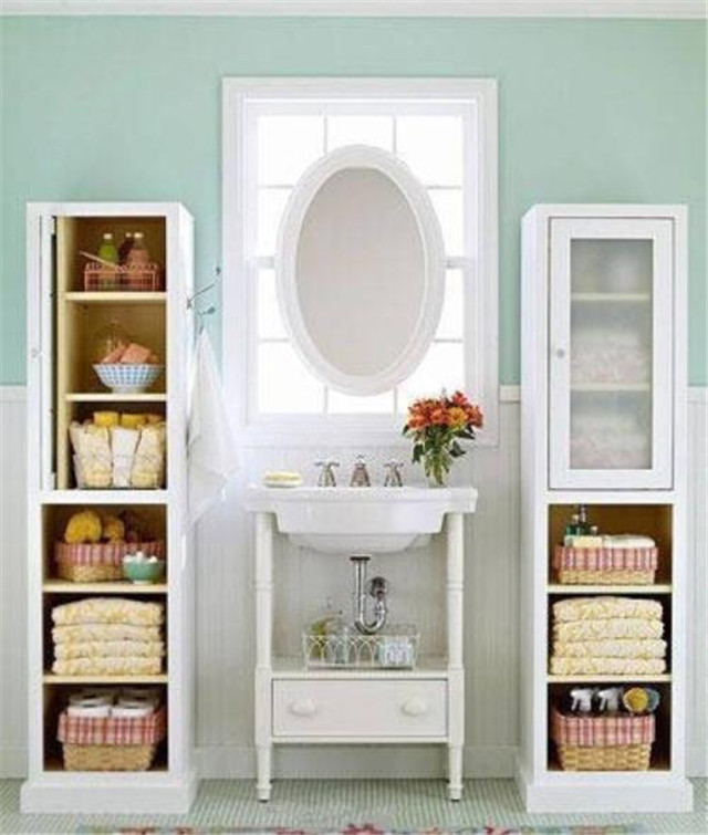 衛浴間是潮氣比較重的地方,合理收納也要保持物品干凈衛生。因此防潮就非常重要,臥室和衛浴間之間最好有推拉門或浴室隔斷。浴巾之類的物品應該放置在朝陽處,多進行曬涼。而衛浴間使用的剃須刀和電吹風應該收納在柜中,避免和潮濕的毛巾放置在一起,才能更好的隔離濕氣。