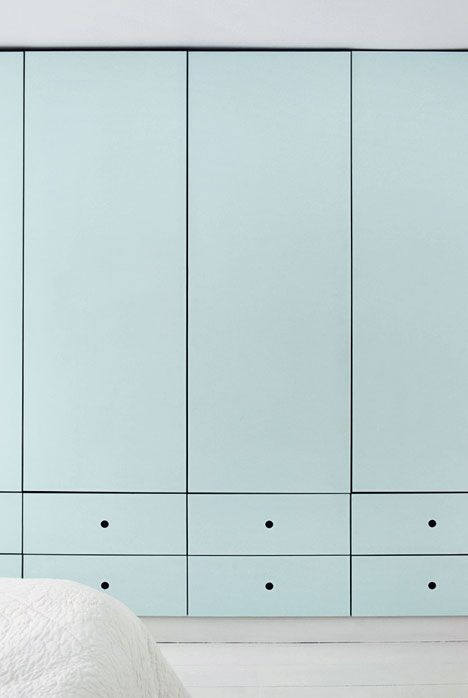 ? ? ? ?不管你家臥室鋪的是木地板還是地磚,地面必須是原木色、淺木色還是灰色,白色啞光的衣柜永遠是首選。因為讓衣柜盡可能地與周圍的墻融為一體,減輕視覺在空間上的負擔。