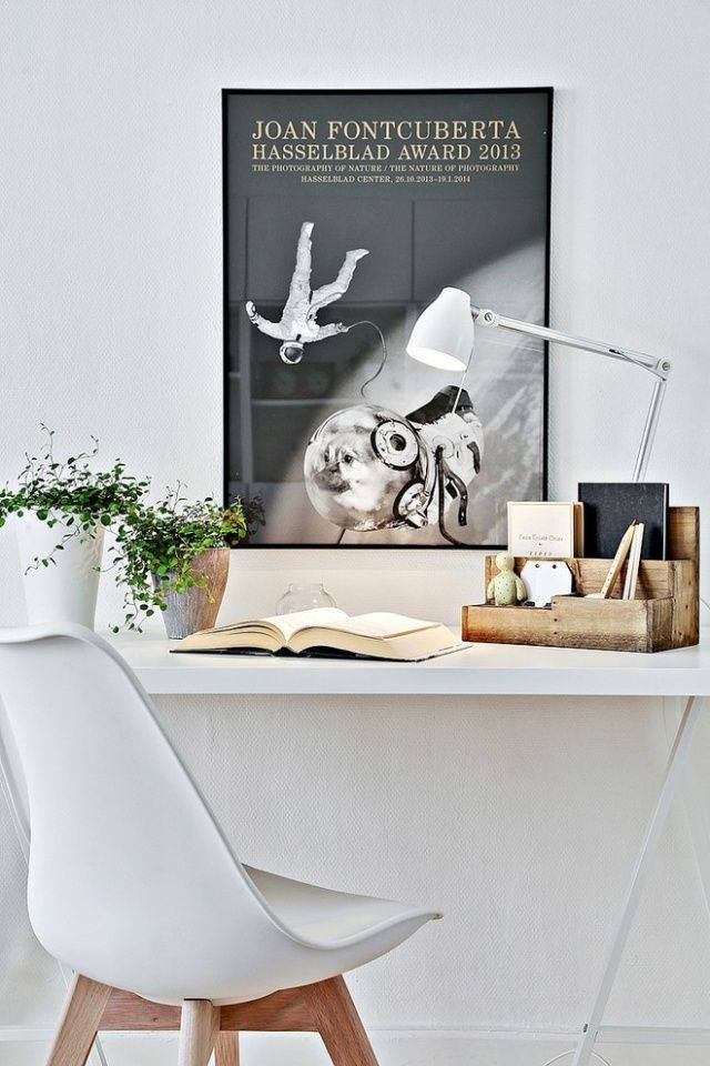 ? ? ? ??看一下上圖中的場景,框畫先別掛,綠植也不著急買,但——提供重點照明的臺燈是必不可少的。不管你是閱讀寫作還是敲鍵盤,都要為工作區準備充足的照明。