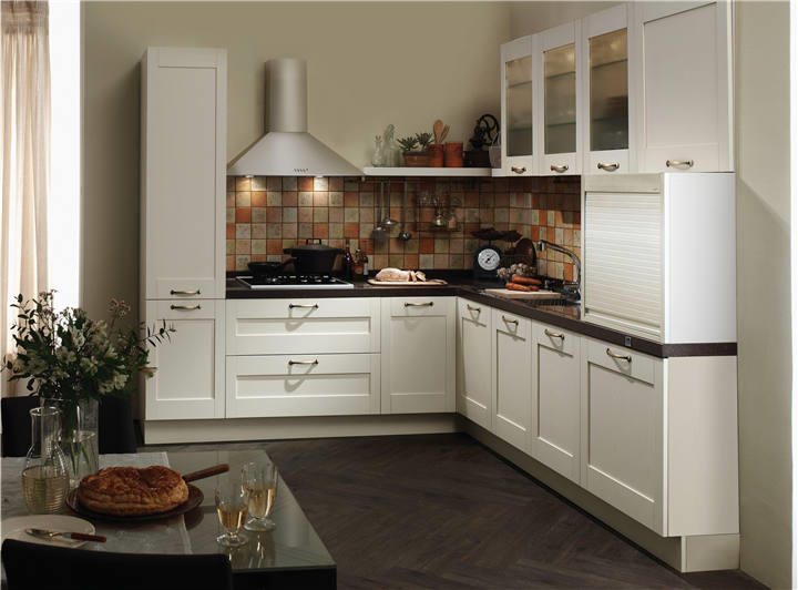 2.??L型:工作區(qū)以墻腳為原點,雙向展開,充分利用拐角空間,是最常見的廚房設計。
