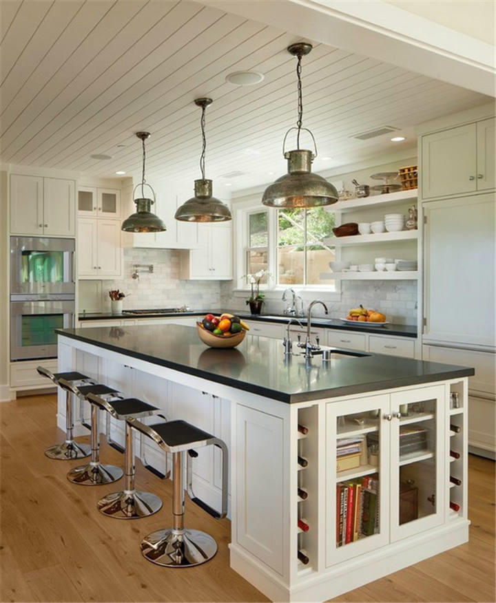 4.??中島型:有更多的操作臺面和儲物空間,中島柜可用作料理臺、餐桌、酒柜,非常實用。