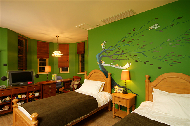 九、臥室樹木圖案背景墻面直接作為分隔墻
