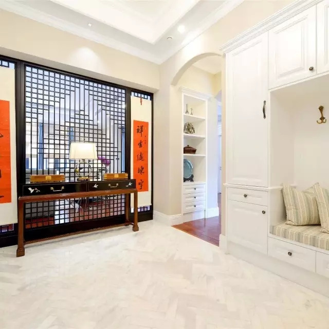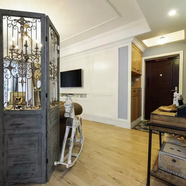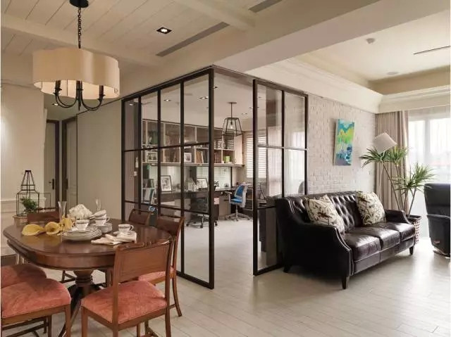 客廳和餐廳連接在一起,面積又比較大,這款通透的鐵藝隔斷帶有設計感極強的花紋,增強了空間的時尚度,又保證了寬敞感,不但很好劃分了區域的功能,又保證了采光效果。家具也可以作為隔斷,大家都不知道吧!在臥室與其他居室連接的閑置地區采用家具,有效劃分區域的同時又很好的發揮了它的作用,收納一些小東西、閑雜用品等等。