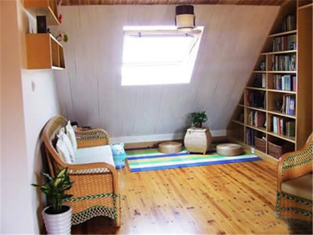 推薦理由:利用閣樓空間,擺放一張沙發與小桌,閣樓是一個相對獨立開的空間,這里寧靜舒適,如果只作為堆積雜物的地方就浪費了。