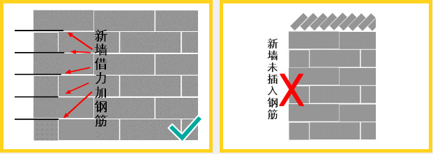 新舊墻體之間需要掛網,可以是尼龍網也可以是鋼絲網,然后才在墻面上抹水泥砂漿。這樣做的好處是加強了墻體間的穩固度,避免墻面開裂。