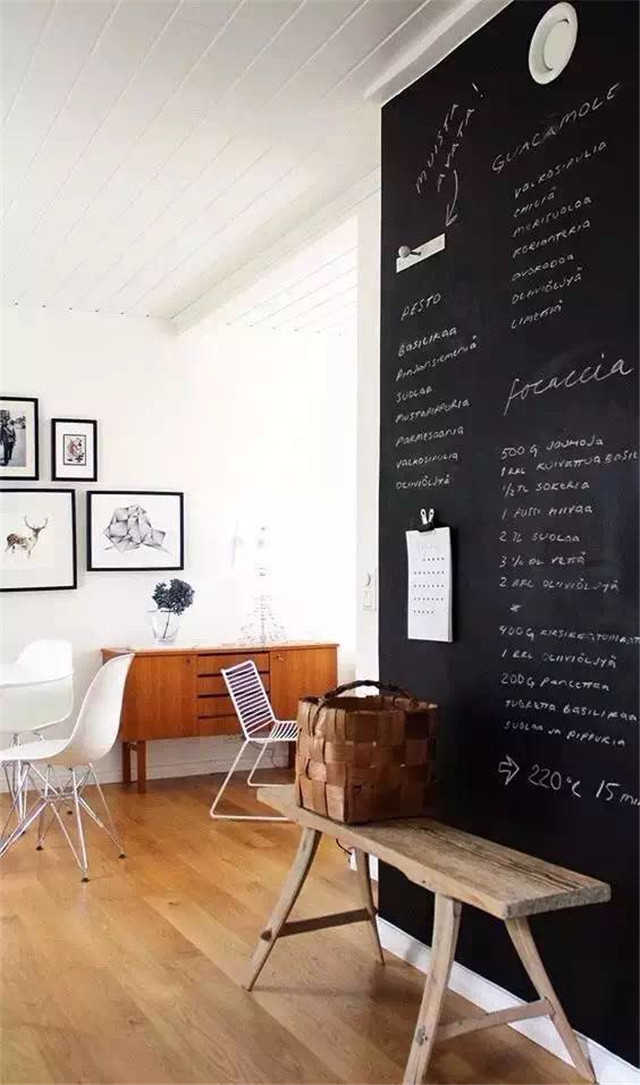 ▲-非傳統(tǒng)玄關組合:入戶整面黑板墻,長條板凳,瑣碎生活也可以變得很文藝。