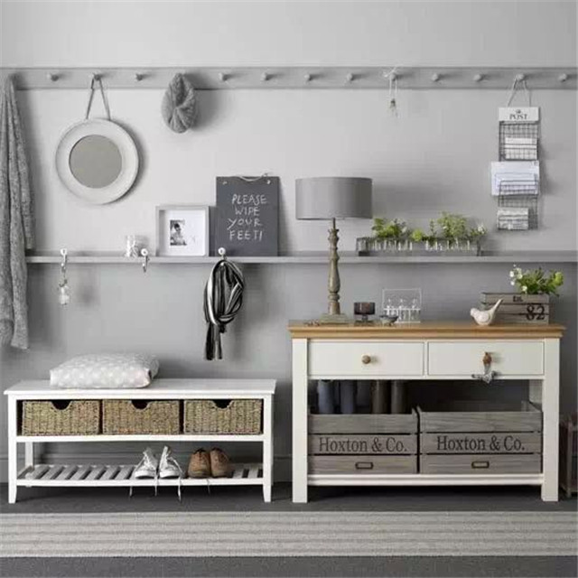 ▲-?L型玄關柜,底部方格提供較大收納空間,墻面也留出了比較大的自由度。