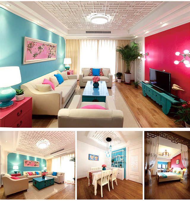 顏色:多用黑、白、灰等中間色為基調色,通過色塊來表現內涵,如澄色等暖色調表現家居的溫暖,紅、黃、藍、綠等相對跳躍艷麗的色彩提升感觀刺激等;