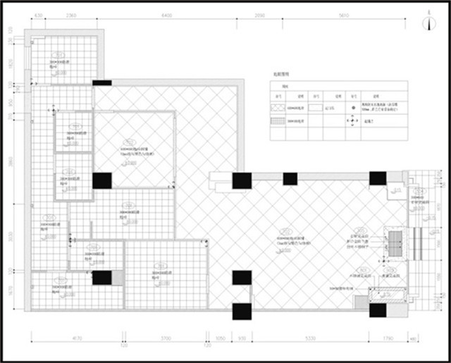 地面材質圖,顧名思義是關于地面材質的所有包含項,它標明需要鋪設的地面材料種類、地面拼花、材料尺寸及不同材料分界線。