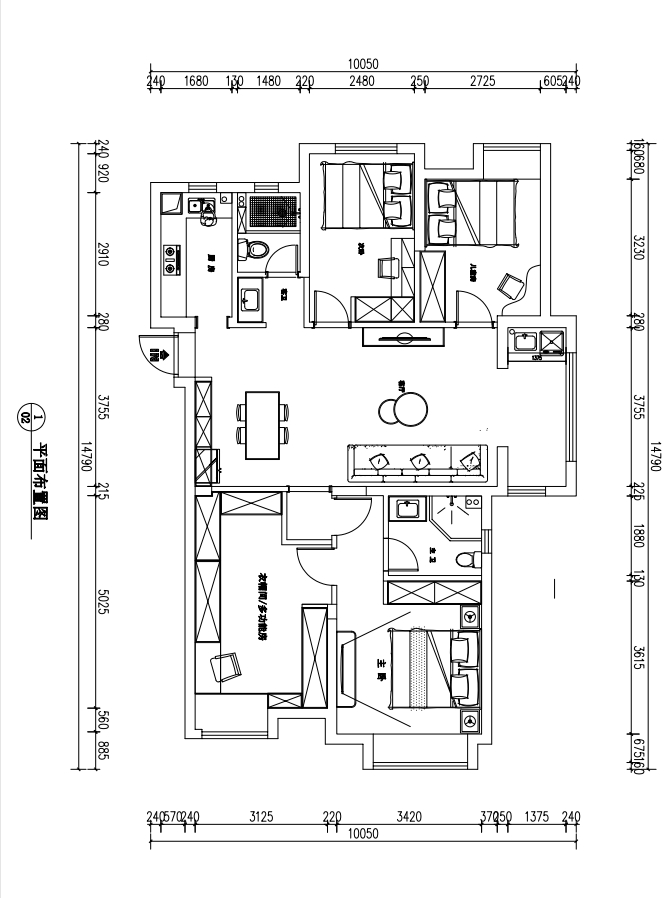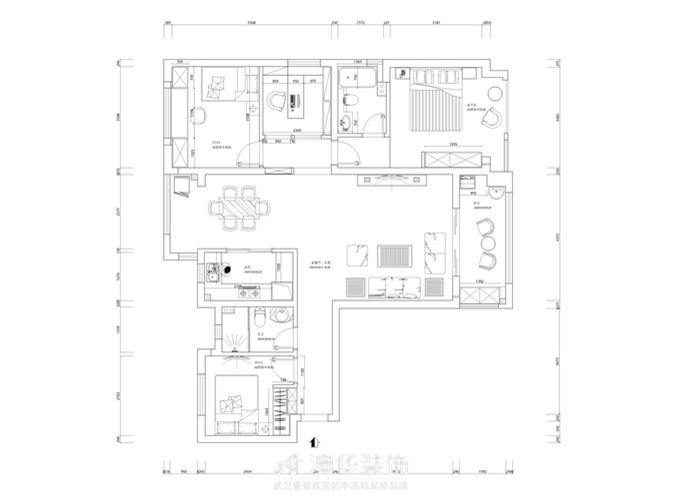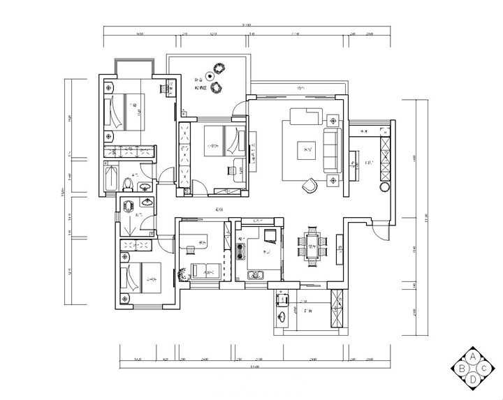 廣電蘭亭瓏府的這套175㎡的四居室房屋其實戶型相對比較合理,并沒有出現(xiàn)各種難以利用設計的角落,因此空間的設計重點將在如何滿足多子家庭的起居使用需求與如何呈現(xiàn)新中式風的大氣美。設計師通過利用一些帶有中式風情的元素進行空間裝飾點綴,強調中式所特有的韻味美,同時利用多個嵌入式設計來提升空間的利用率,避免房屋看起來過于的壓抑、局促。