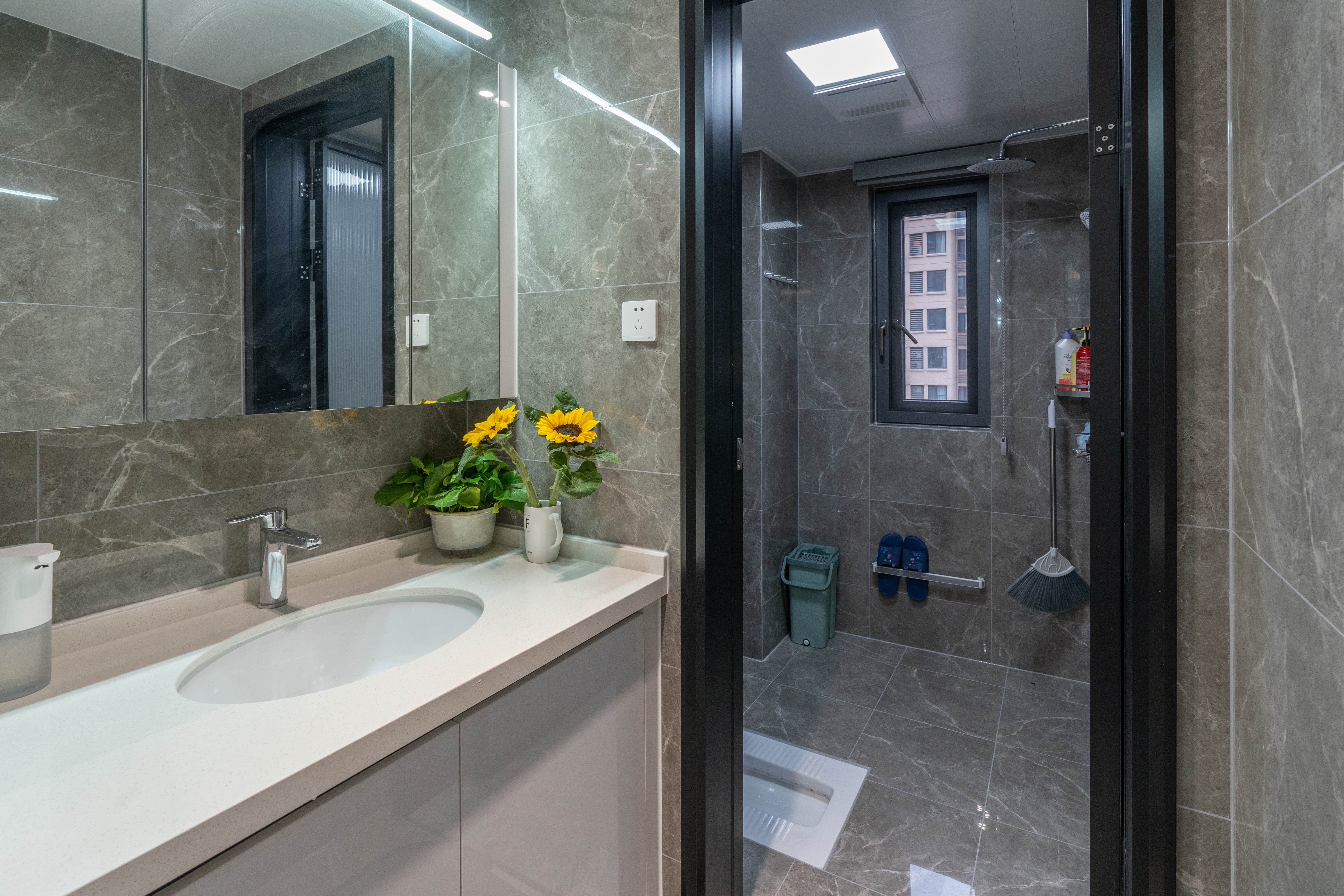 • 客衛干濕分離,洗手區位于門外部,這樣的設計讓業主使用起來更靈活。濕區不做分隔,依據業主的意愿,這里做了蹲廁的設計。整個內部空間十分開闊,給小朋友洗澡的時候也可以更從容。