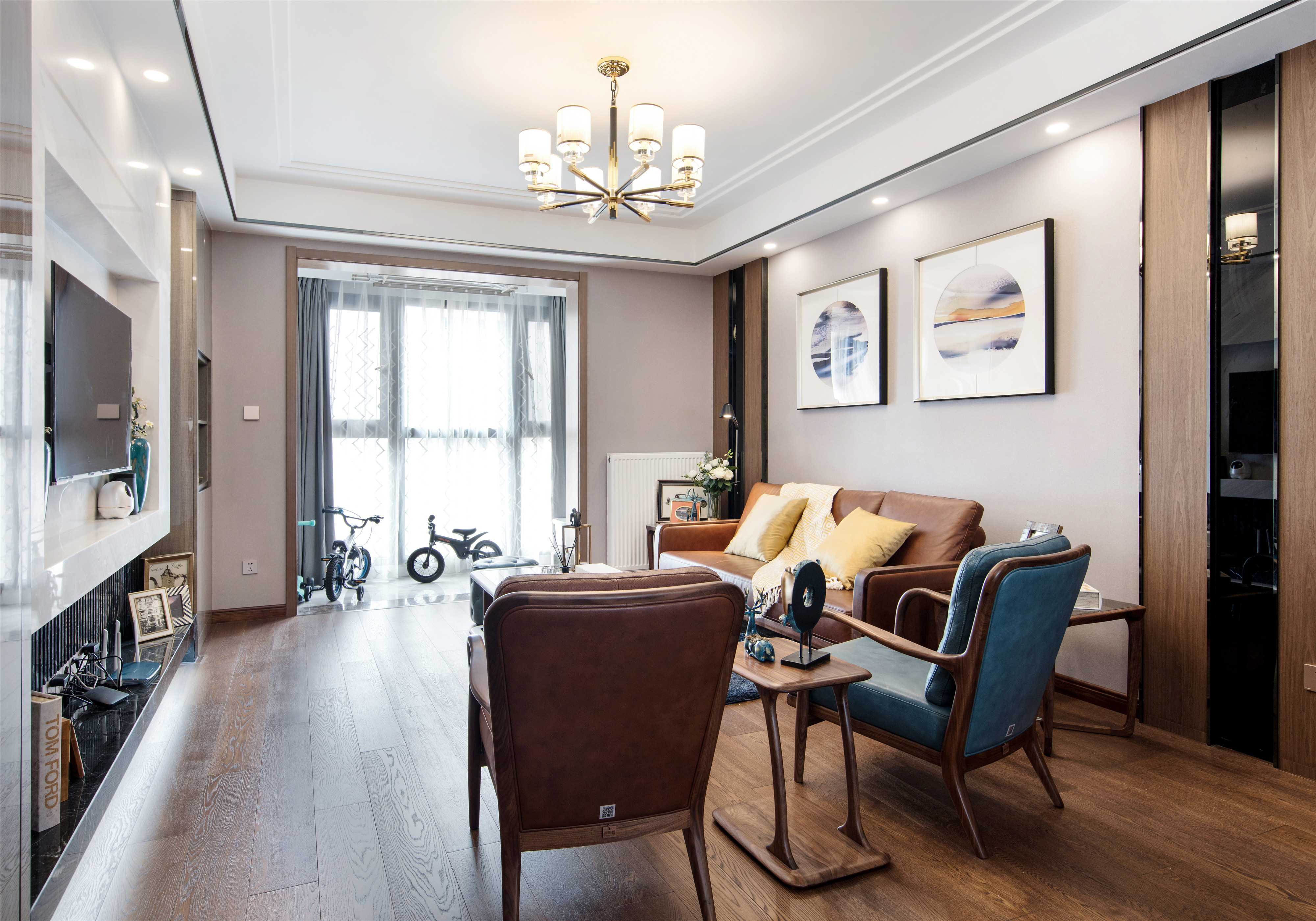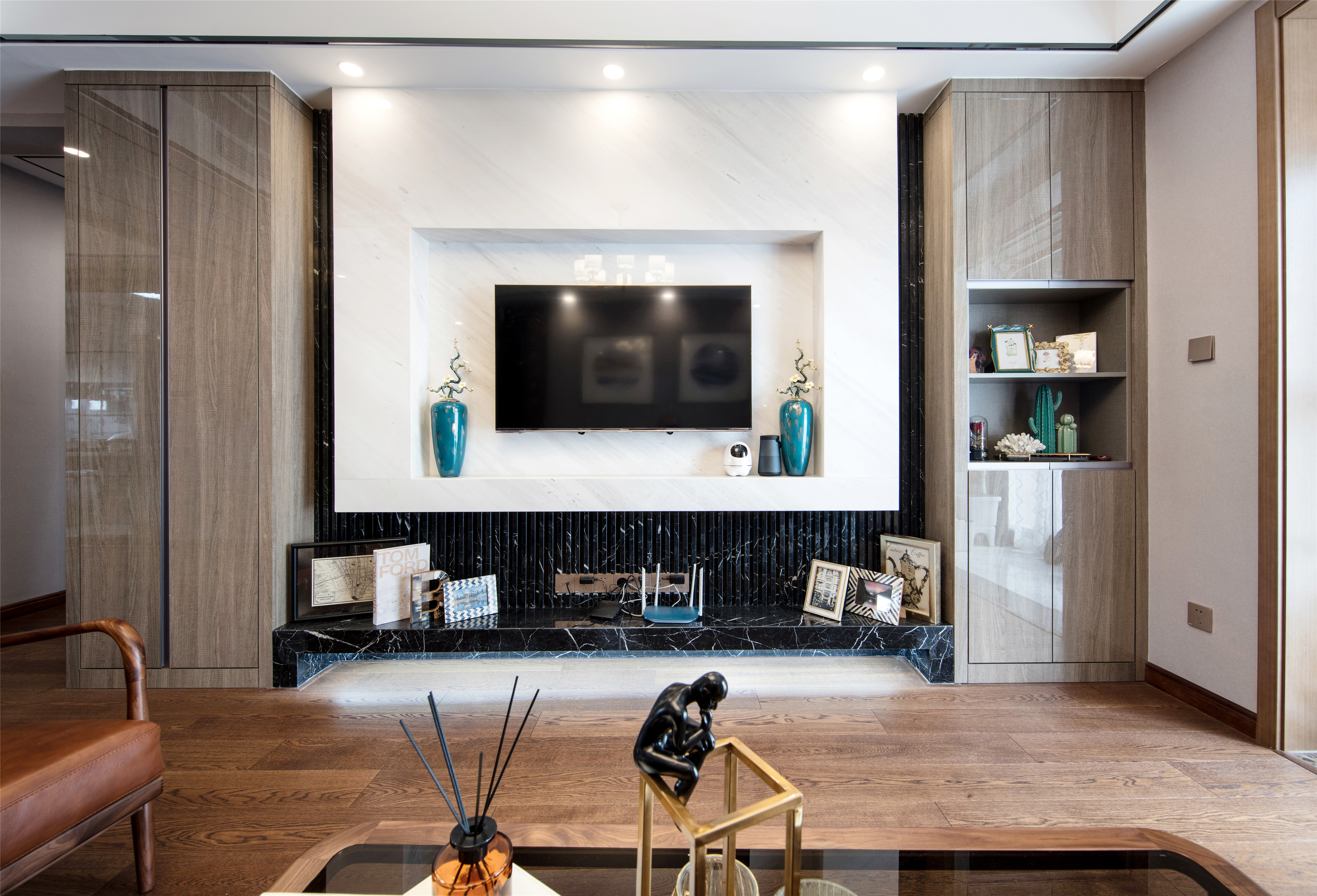 在設計的時候,應用了大面積的木質材料與深色家具彰顯文化底蘊,輔以金屬色和線條感營造豪華感,簡潔而不失時尚。