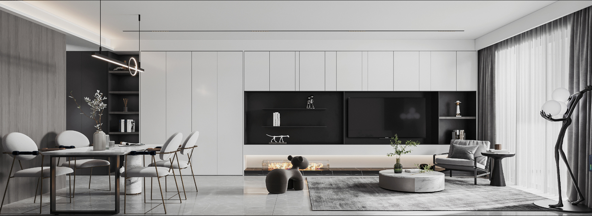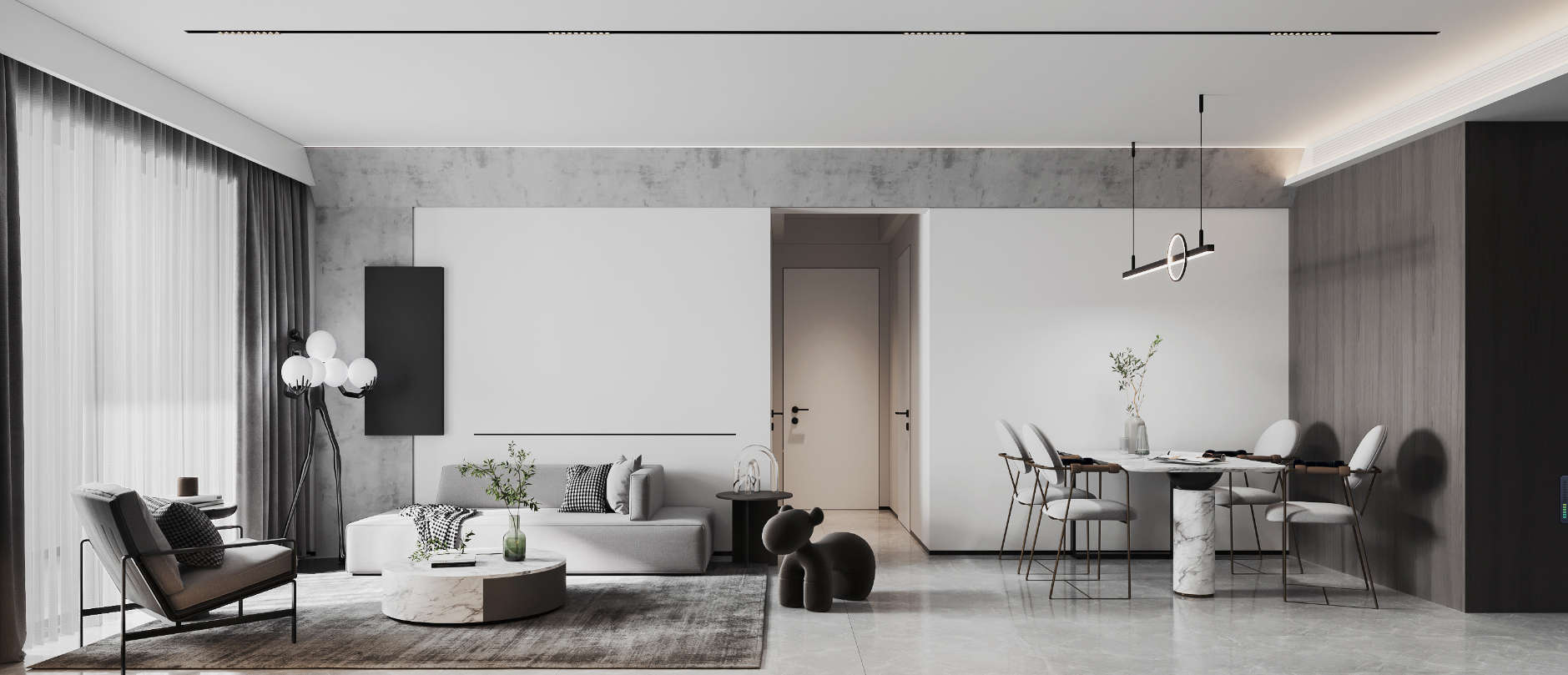 對于空間氣質的表達是一門藝術 餐廳呈現暗色系的現代感官 這里沒有喋喋不休 寧靜有增長心靈的力量 似乎能讓人感知優雅的存在 以原木色與白色為主體 拾取飽和度較低的灰黑色系點綴 讓整個空間在舒適簡單中隱隱散發高級的質感